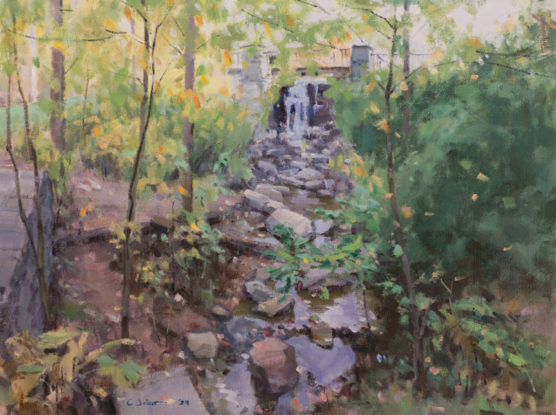 Charles Jiao grew up in China during the Cultural Revolution, which caused his formal education to be frequently interrupted. To avoid wasting his time, his father had him get tutored from family friends including an artist, who brought him into the art world. In 1986 Jiao left China for the United States for graduate education, where he earned a Master of Science and a PhD in chemistry respectively from University of Minnesota-Duluth and Purdue University. During this period he continued his study of art through private lessons of watercolor, for two years of spare time. A chemist position with a government contract company for Air Force Research Laboratory brought him to Dayton, Ohio, where he continued to paint as a hobby, and began to work in oils.