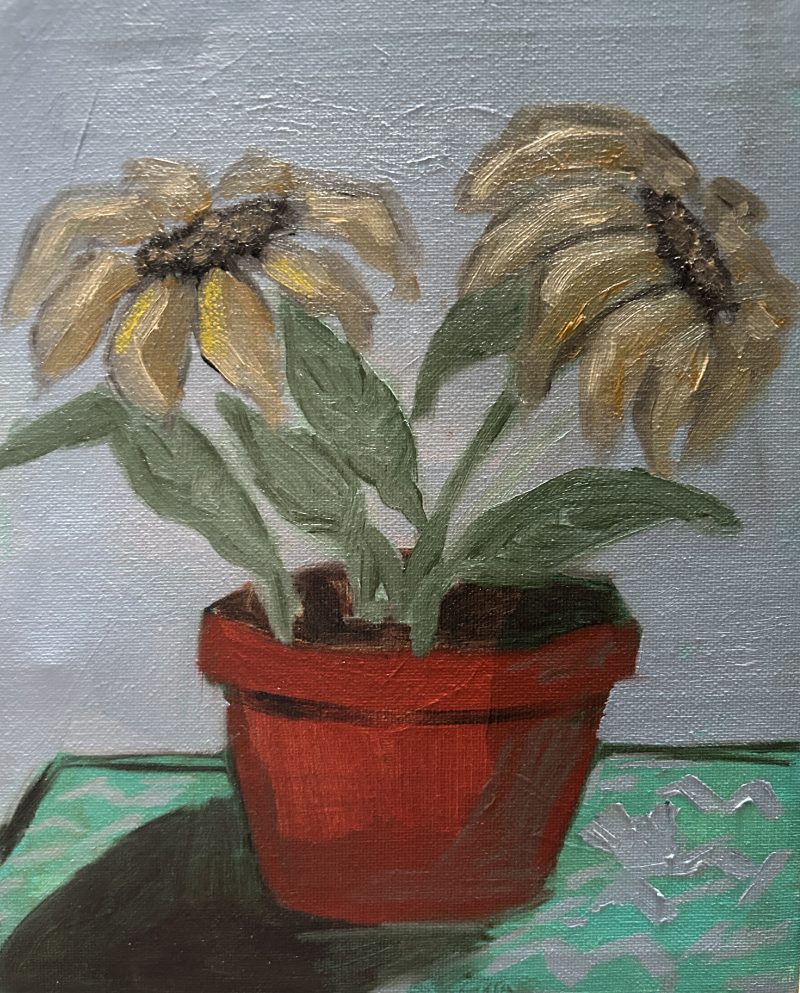 Erin Brandon is an emerging artist-in-residence working in oil and mixed media. She is still learning and growing in her artistic practice. A busy mother of six, she is inspired by nature, her faith, and everyday life. She also creates scented soaps, candles, and explores a variety of other art forms.