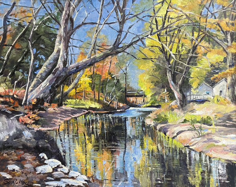 My love of the “view” has been a long standing interest in my life. I often work en plein air which requires standing in front of the easel for hours with full focus and study on what you are seeing. For me every work created evokes vivid memories of the day I did it complete with sounds, weather and the connection to that place in time. My studio work is inspired by the photos I have taken while exploring new and familiar places. I have worked in many art media but oil is my confirmed favorite. I am a realist with a dash of impressionism.